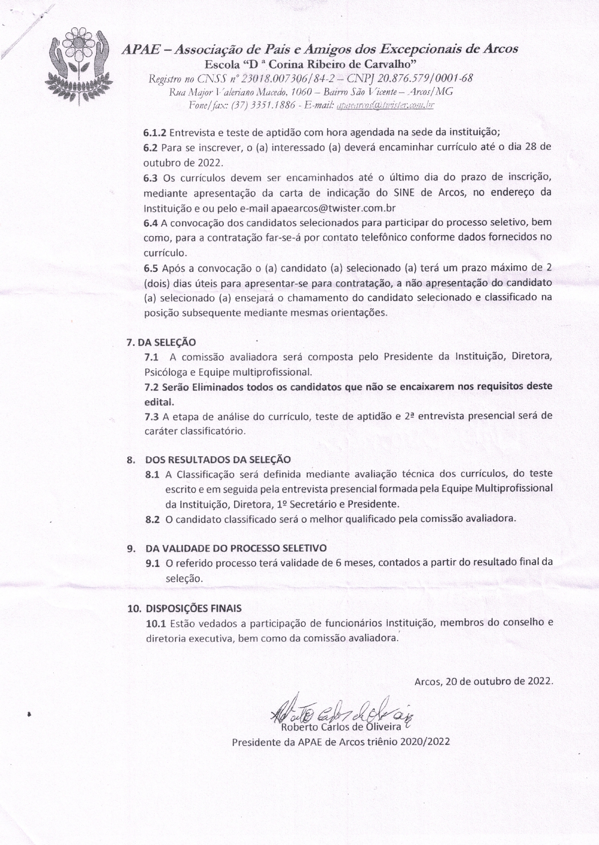 APAE: edital simplificado de seleção para contratação de Terapeuta Ocupacional