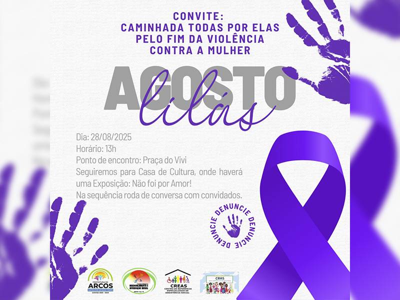 A Prefeitura de Arcos, por meio da Secretaria de Desenvolvimento e Integração Social, promove no dia 28 de agosto de 2025, a Caminhada Todas por Elas, uma mobilização em defesa dos direitos das mulheres e pelo fim da violência de gênero. A ação integra a programação do Agosto Lilás, campanha nacional de conscientização sobre a importância da prevenção e do enfrentamento à violência contra a mulher.