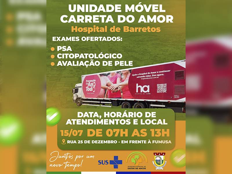 #Saúde #Prevenção #CarretaDoAmor #HospitalDeAmor #Arcos #CuidadoComAmor #SaúdeÉPrioridade