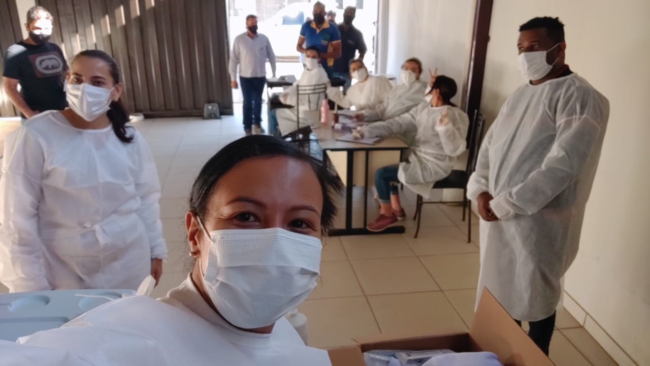 Já nas primeiras horas de expediente, outra equipe esteve mobilizada na vacinação das pessoas de 49 anos. A imunização ocorreu na quadra poliesportiva da Escola Estadual Dona Berenice de Magalhães Pinto. De acordo com Secretaria Municipal de Saúde, foram aplicadas 358 doses.