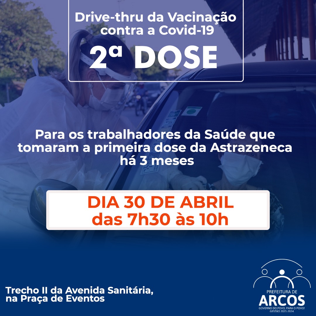 Nesta sexta-feira (30/04) tem vacinação de 2ª dose para os profissionais de Saúde, que tomaram ‘Astrazeneca’ e que estão completando 03 meses da primeira imunização.