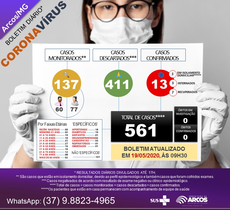 No fim da tarde de ontem, 18, o 12º caso positivo da cidade de Arcos, foi de uma mulher, de 17 anos, que teve contato direto com o 8º caso.