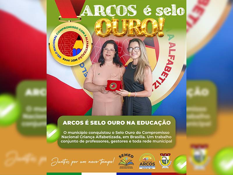 É com grande orgulho que anunciamos que o município de Arcos foi reconhecido, pelo segundo ano consecutivo, com o Selo Ouro, uma importante certificação que reafirma o compromisso da nossa gestão com a qualidade dos serviços públicos e a excelência na Administração.
