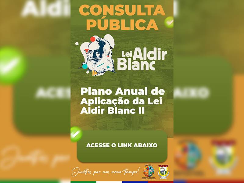 A Prefeitura de Arcos, por meio da Secretaria de Cultura, Esporte, Lazer e Turismo, abriu uma consulta pública para aplicação da Lei Aldir Blanc II no município.