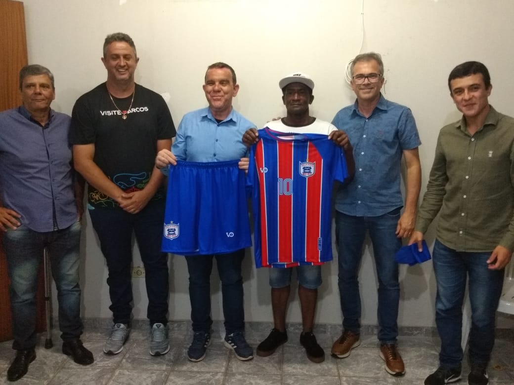 O prefeito Claudenir José de Melo (Baiano); o vice Dr Sérgio Vilela de Oliveira; o vereador João Paulo Ferreira; o secretário municipal de Esportes, Paulo Henrique Miranda; e o presidente da Junta de Justiça Desportiva, João Gonzaga marcaram presença e auxiliaram no repasse do uniforme.