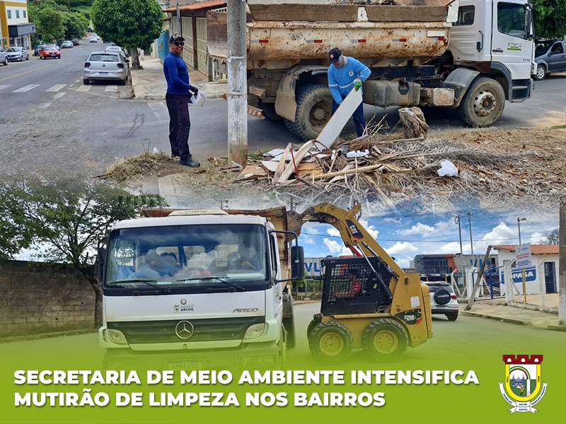 A Prefeitura Municipal de Arcos, por meio da Secretaria Municipal de Meio Ambiente, tem intensificado os serviços de mutirão de limpeza nos bairros do município, reforçando o compromisso com a saúde pública e a qualidade de vida da população.