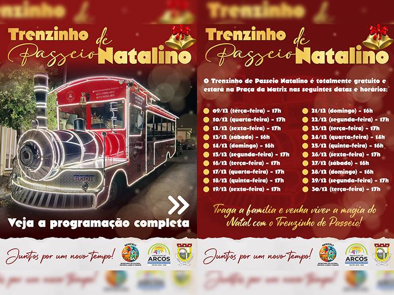 Venha viver a magia do Natal! Traga a família e aproveite o Trenzinho de Passeio na Praça Matriz.