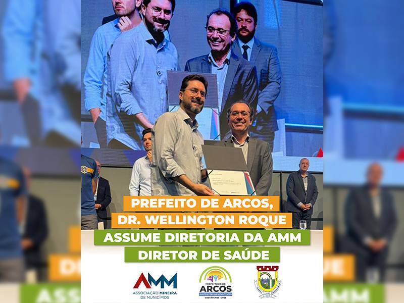 Nesta terça-feira (11/11), o prefeito de Arcos, Dr. Wellington Roque, foi oficialmente nomeado Diretor de Saúde da Associação Mineira de Municípios (AMM), uma das mais importantes entidades representativas do municipalismo em Minas Gerais.