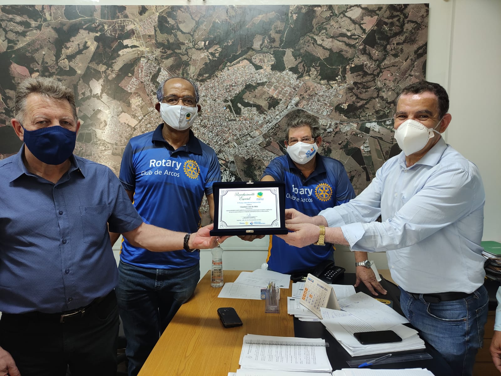 A concessão da placa ocorreu no gabinete do prefeito. Ela foi entregue pelo governador do Rotary Internacional Distrito 4560, José Carlos de Azevedo, que esteve à Prefeitura acompanhado de rotarianos do município.