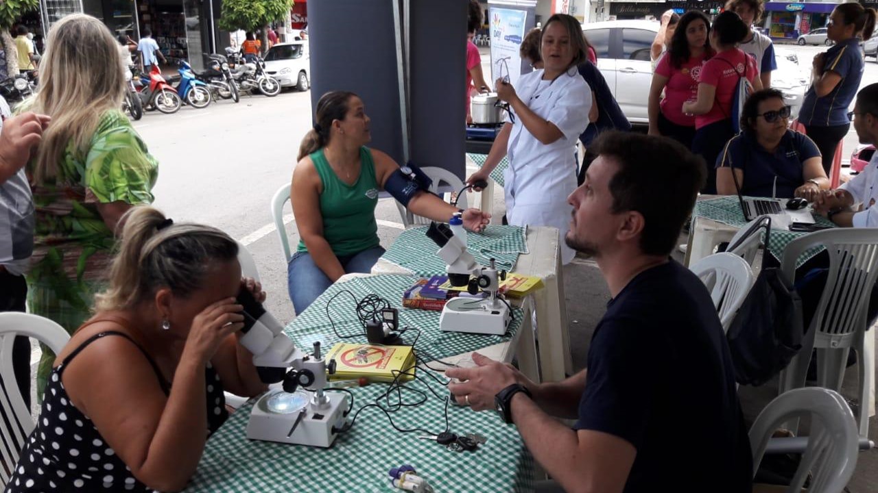 O setor de Saúde da Prefeitura auxiliou com o trabalho de aferição de pressão e glicemia, além de prestar informações relevantes sobre combate à dengue, com distribuição de panfletos e amostragem de larvas em microscópio.