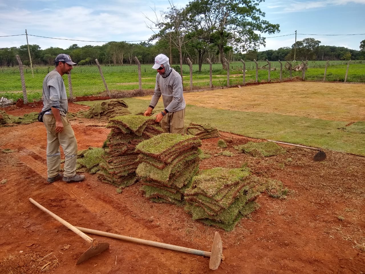 O espaço que serve aos desportistas locais estava desdeixado e mal cuidado. Mas o cenário está mudando! Quem passou hoje pela manhã, próximo ao campo, já avistava a equipe da prefeitura trabalhando e embelezando o ambiente. Em toda extensão do campo foi colocado terra de boa qualidade, para servir de base para o novo gramado.