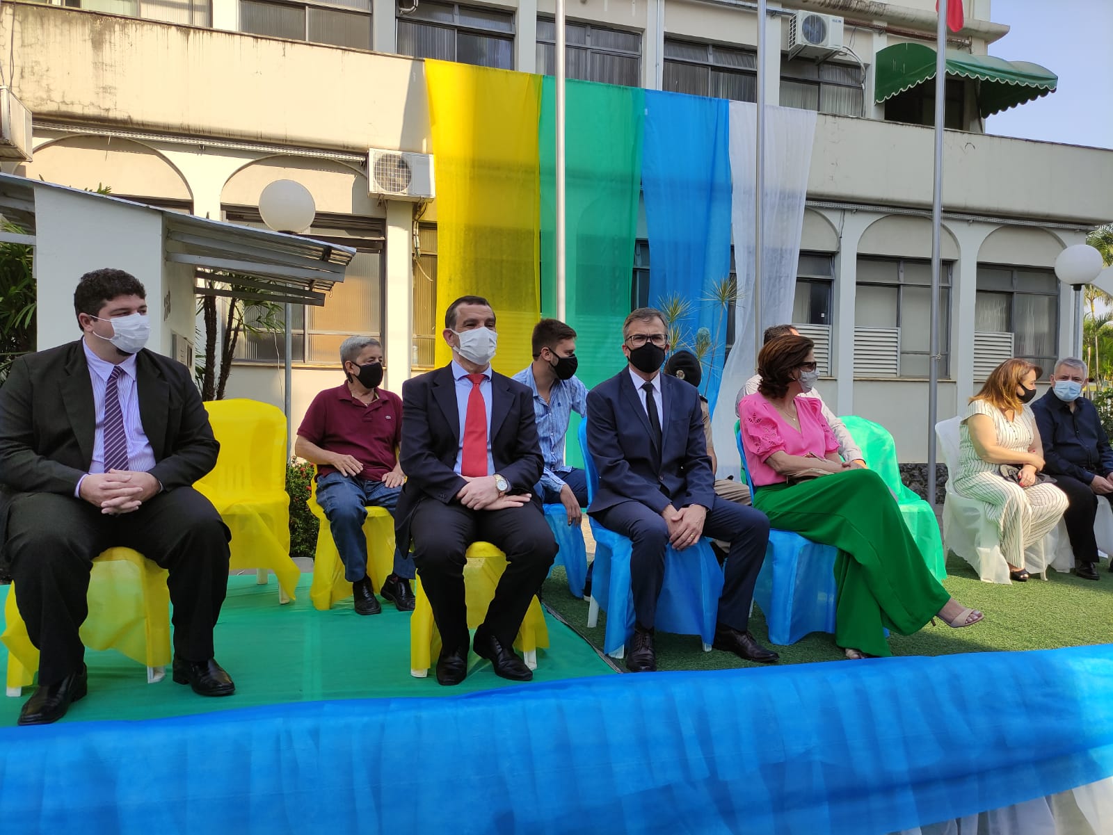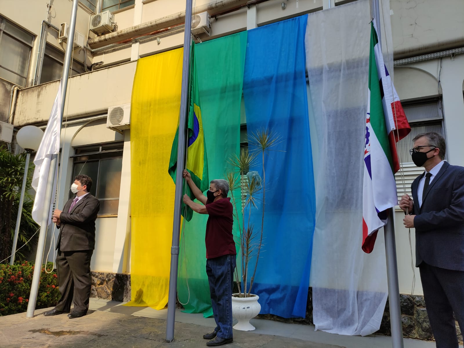 Ao lado do servidor público, também participaram do hasteamento o presidente da Câmara, Ronaldo Ribeiro; e o vice-prefeito, Sérgio Vilela.
