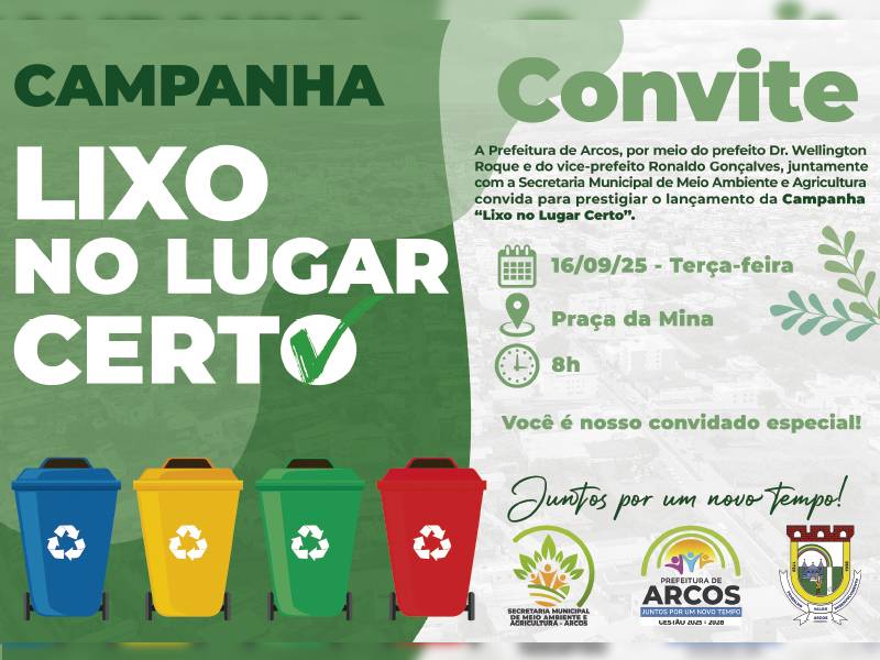 A Secretaria Municipal de Meio Ambiente de Arcos apresenta a Campanha Lixo no Lugar Certo.