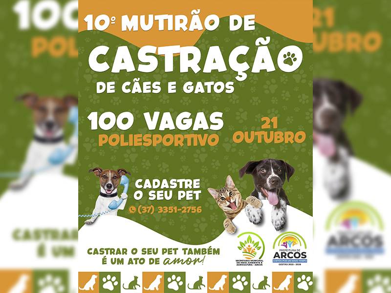 Prefeitura Municipal de Arcos promove o 10º Mutirão de Castração de Cães e Gatos
