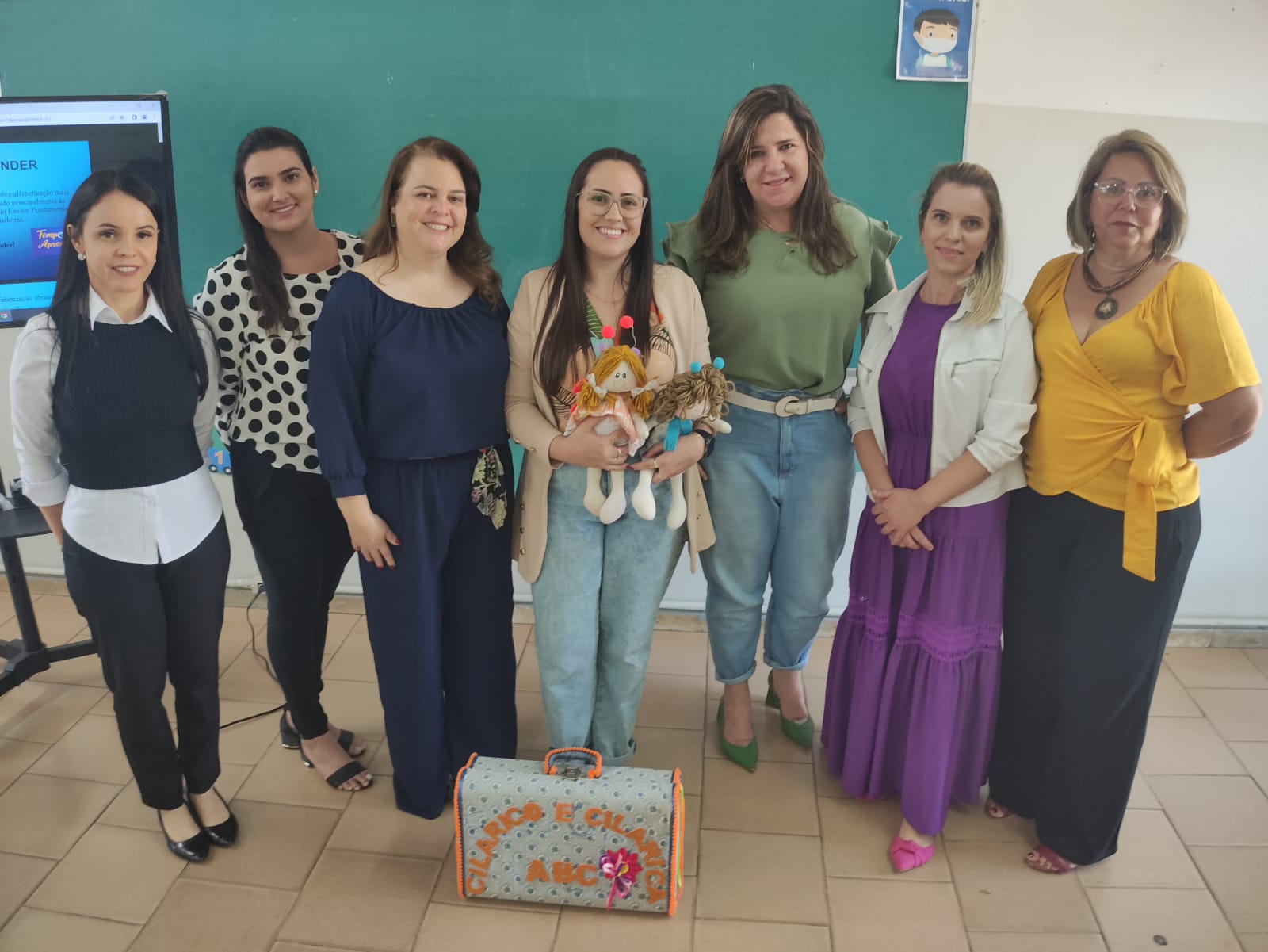 Foto: Lara ao centro, com educadores da escola do Esplanada e Secretaria de Educação