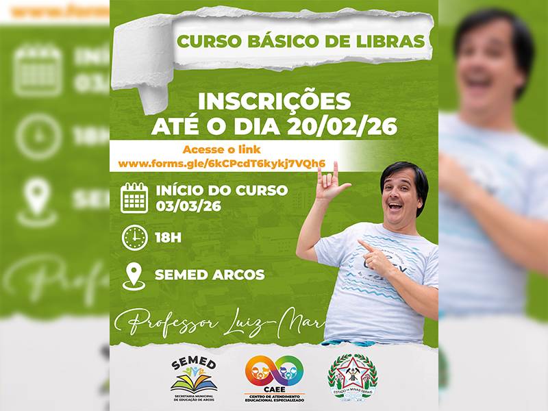 O Curso Básico de Libras será realizado de forma presencial às quartas e quintas-feiras, no período de 3 de março a 08 de dezembro de 2026.